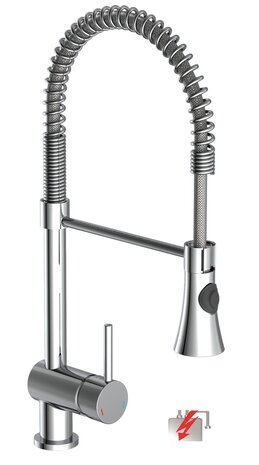 CORNWALL ééngreepsmengkraan keuken met spiraalveer, lage druk, chroom lage druk kraan - alleen geschikt voor lage druk boilers/kleine accumulatoren (onder wastafel model) hoge ronde uitloop en 360
