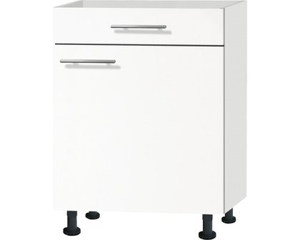 De onderkasten staan op verstelbare poten waardoor u deze op verschillende hoogte kunt instellen, de plinten en dempers worden gratis bijgeleverd.