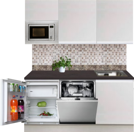 Kitchenette 180cm greeploos wit met koelkast en vaatwasser RAI-449