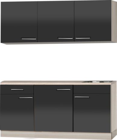 keukenblok 180cm antraciet glans met wandskasten incl inbouw koelkast RAI-39012